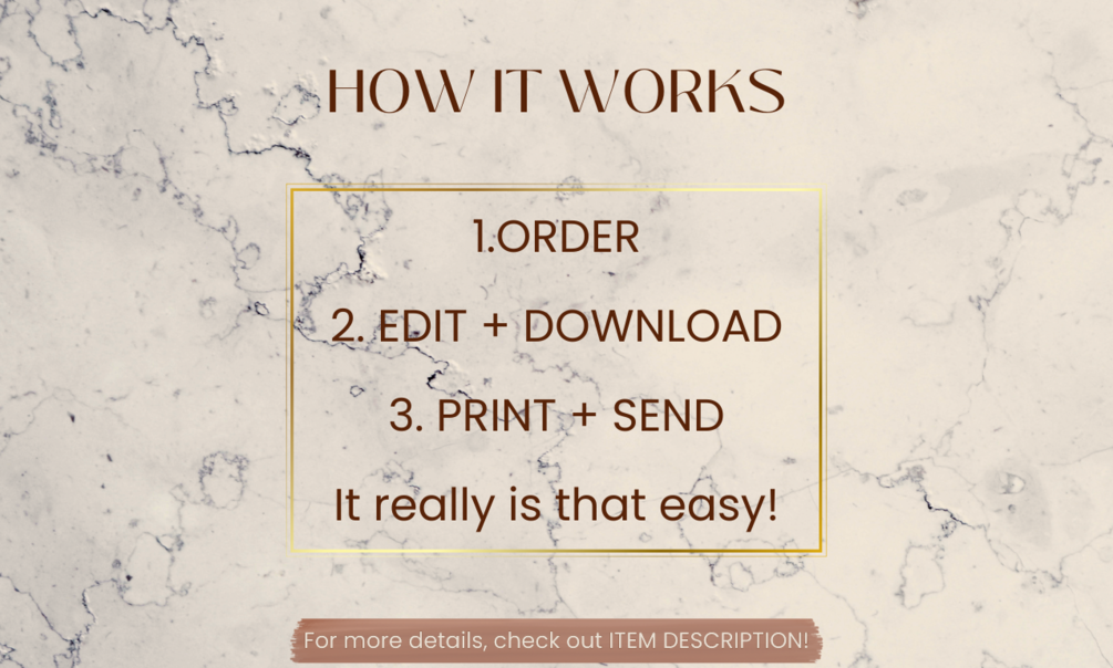 You'll receive a PDF with a template link that allows you to easily change the font, logo, and listing.